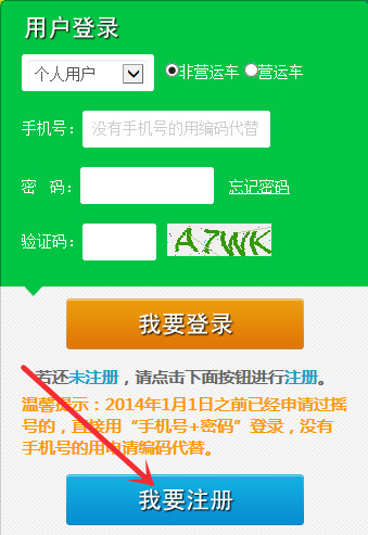進(jìn)入“北京市小客車指標(biāo)管理信息系統(tǒng)”官網(wǎng),如圖所示,按提示注冊賬號