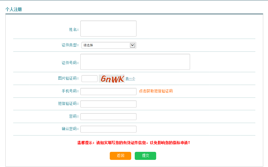 填寫申請人信息,并點擊提交。