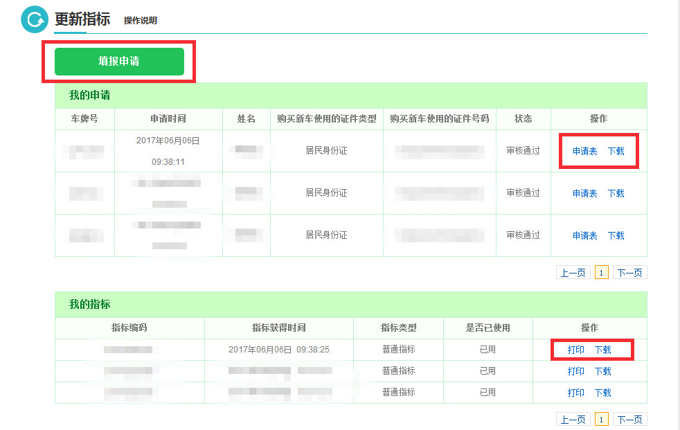在“我的指標(biāo)”欄點擊打印或下載,最終更換車輛是要拿紙質(zhì)的指標(biāo)